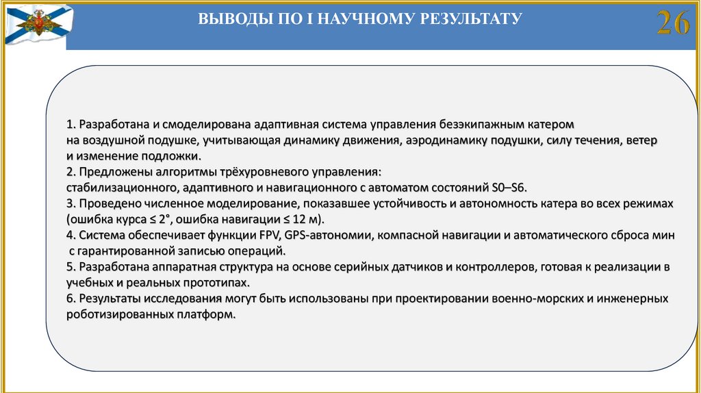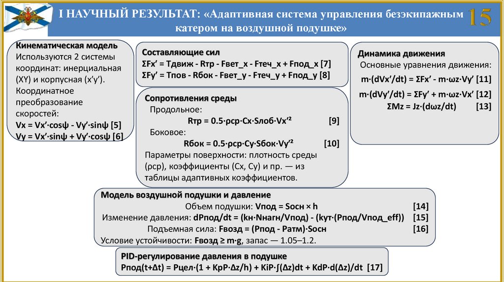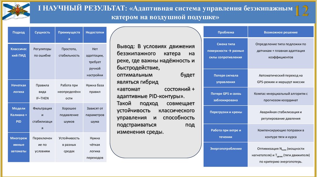 АДАПТИВНАЯ СИСТЕМА УПРАВЛЕНИЯ БЕЗЭКИПАЖНЫМ КАТЕРОМ НА