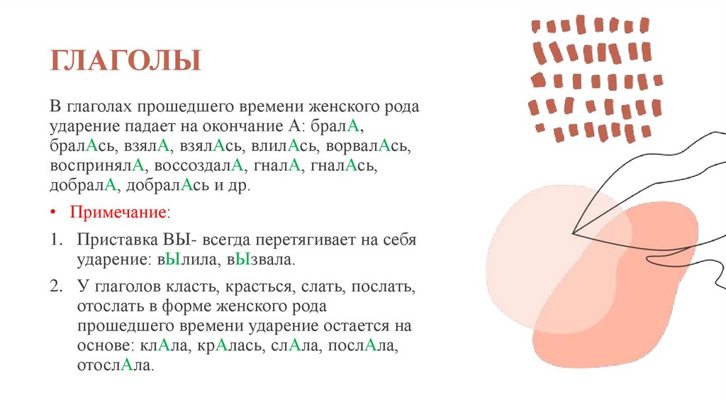 ГЛАГОЛЫВ глаголах прошедшего времени женского рода