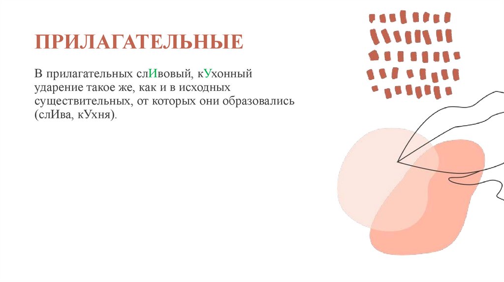 ПРИЛАГАТЕЛЬНЫЕВ прилагательных слИвовый, кУхонный
