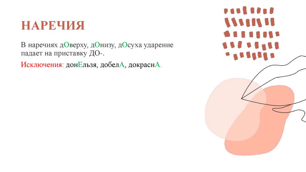 НАРЕЧИЯВ наречиях дОверху, дОнизу, дОсуха ударение
