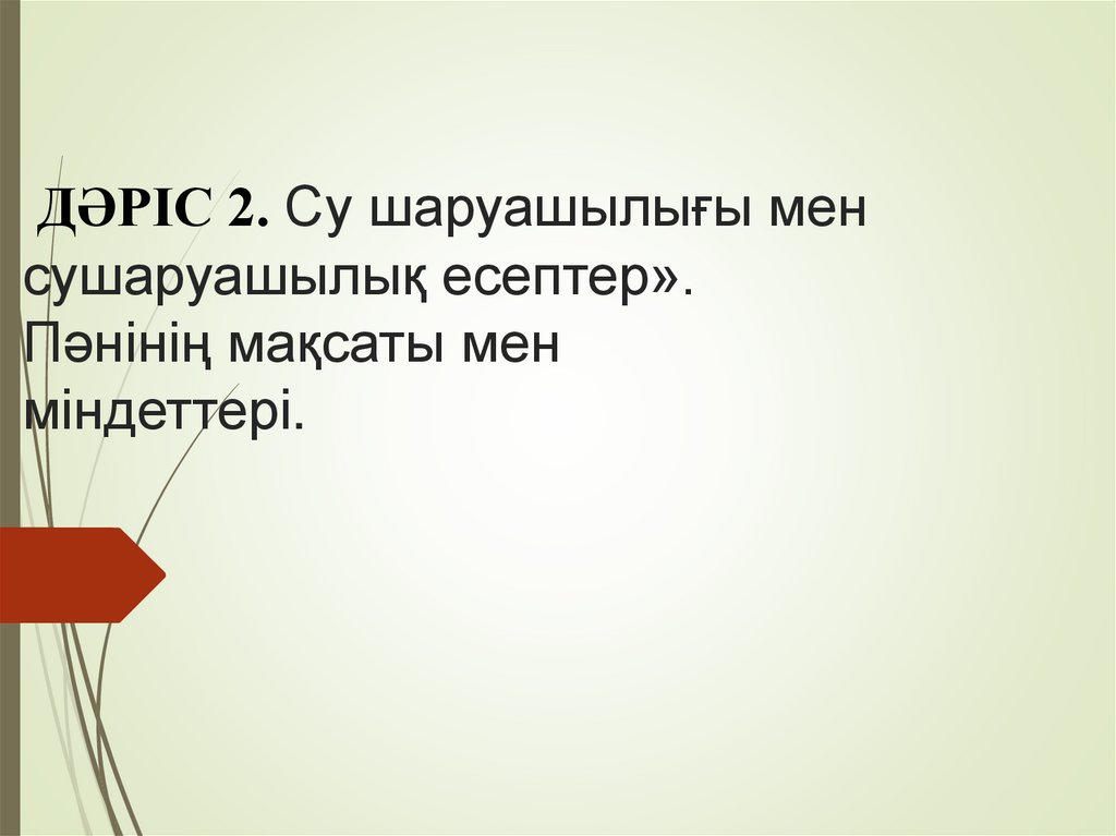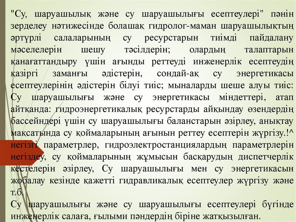 1. ДӘРІС 2. Су шаруашылығы мен сушаруашылық есептер». Пəнінің мақсаты мен міндеттері.