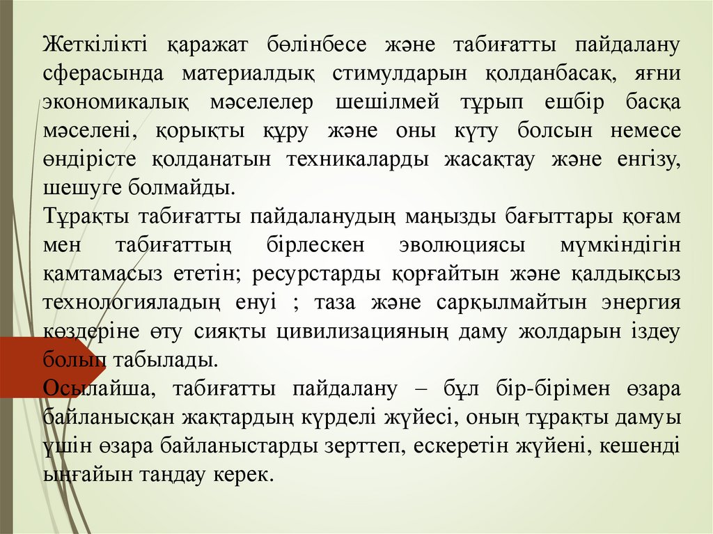 Жеткілікті қаражат бөлінбесе және табиғатты пайдаланусферасында материалдық стимулдарын қолданбасақ, яғни