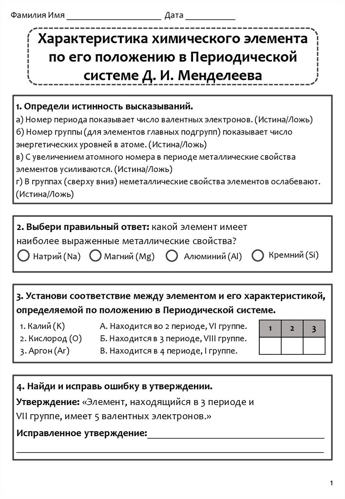 Фамилия Имя _____________________ Дата ___________Характеристика химического элемента