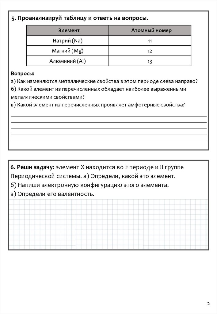 5. Проанализируй таблицу и ответь на вопросы.Элемент