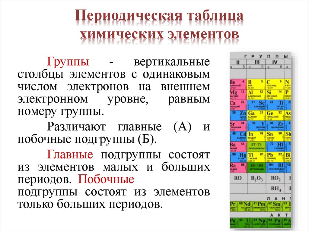 побочные подгруппы (Б).