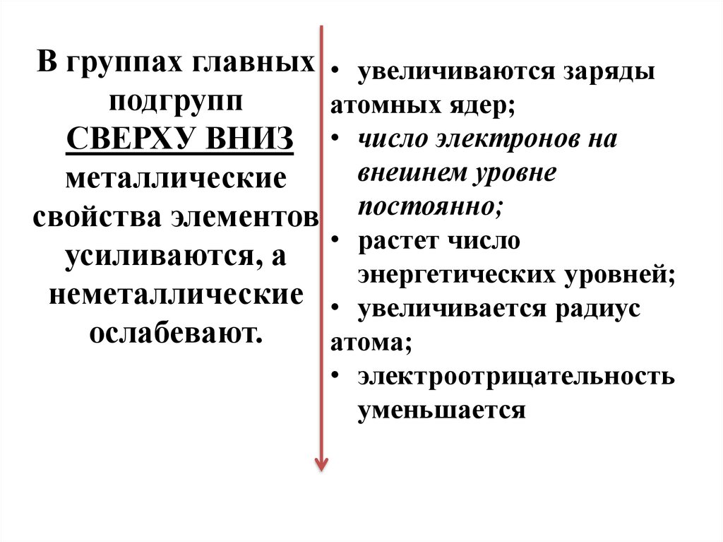 В группах главных • увеличиваются зарядыподгрупп