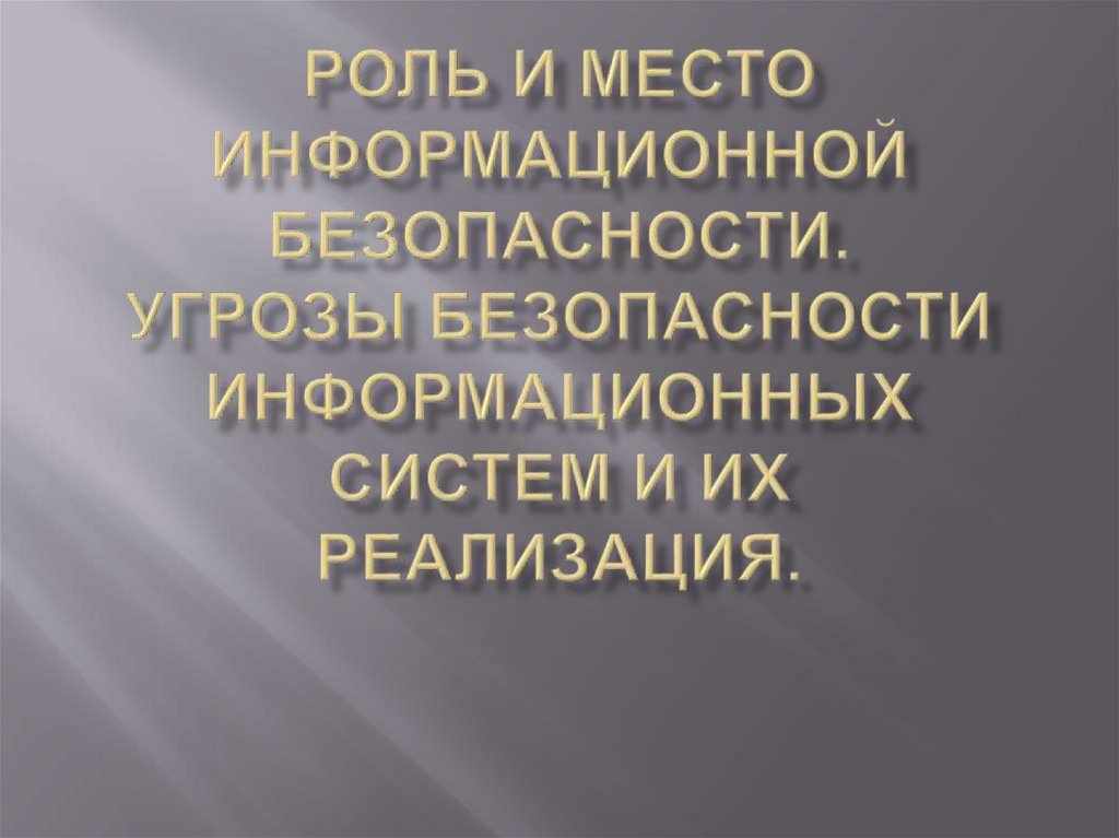 1. Роль и место информационной безопасности. Угрозы безопасности информационных систем и их реализация.