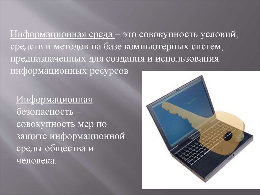 Информационная среда – это совокупность условий,средств и методов на базе компьютерных систем,