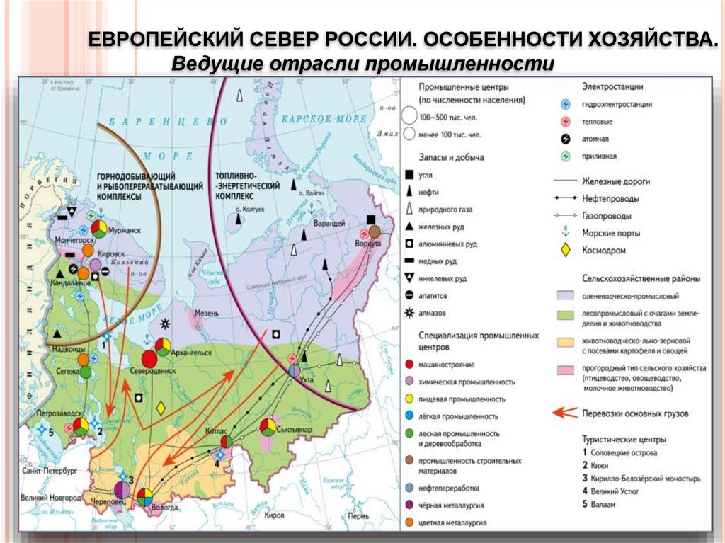 ЕВРОПЕЙСКИЙ СЕВЕР РОССИИ. ОСОБЕННОСТИ ХОЗЯЙСТВА.Ведущие отрасли промышленности