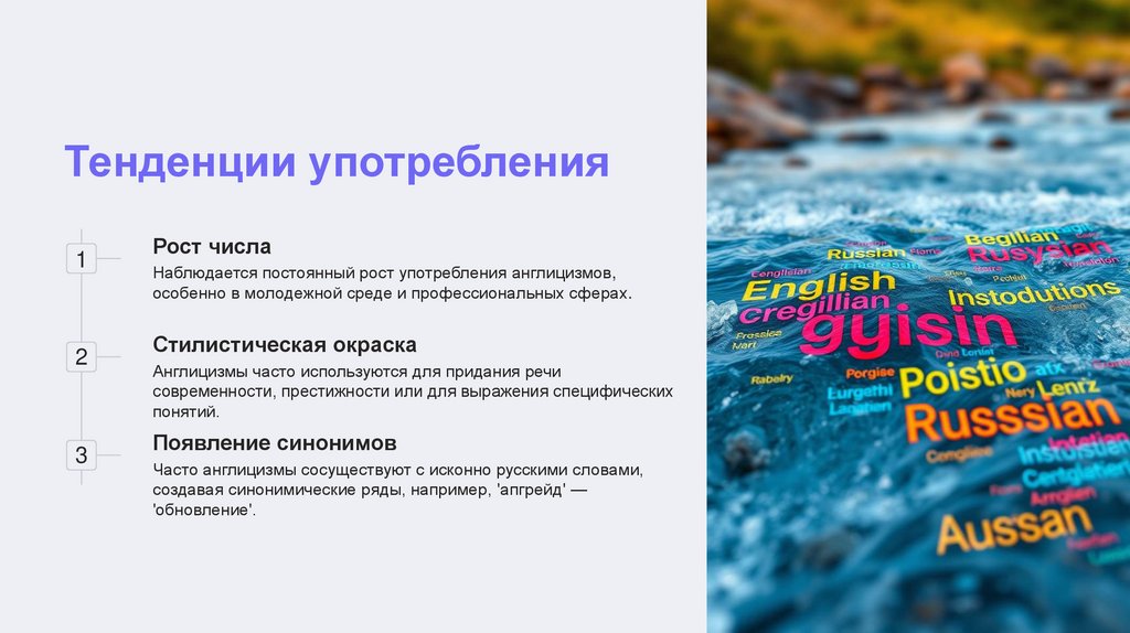 Использование англицизмов может изменять стилистику речи, делая ее более современной или неформальной.
