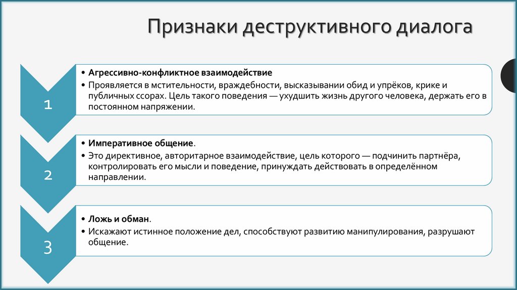 22. Чтобы превратить деструктивное общение в правильное, конструктивное, можно использовать следующие рекомендации: