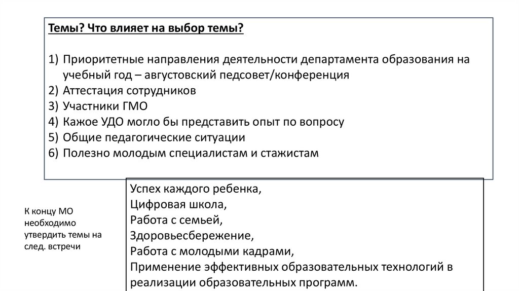 Темы? Что влияет на выбор темы?1) Приоритетные направления деятельности департамента образования на