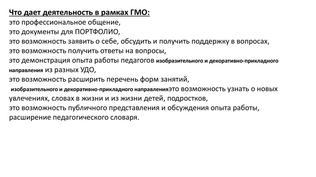 Что дает деятельность в рамках ГМО:это профессиональное общение,
