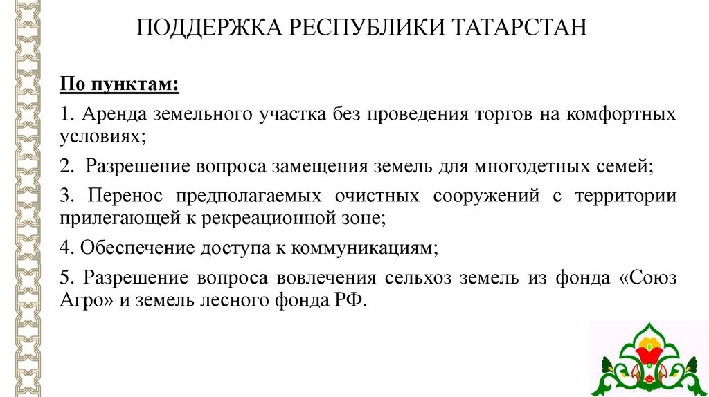 ПОДДЕРЖКА РЕСПУБЛИКИ ТАТАРСТАНПо пунктам: