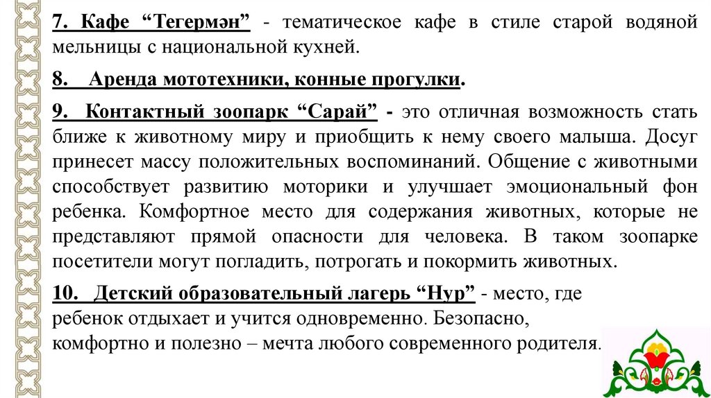 7. Кафе “Тегермән” - тематическое кафе в стиле старой водяноймельницы с национальной кухней.