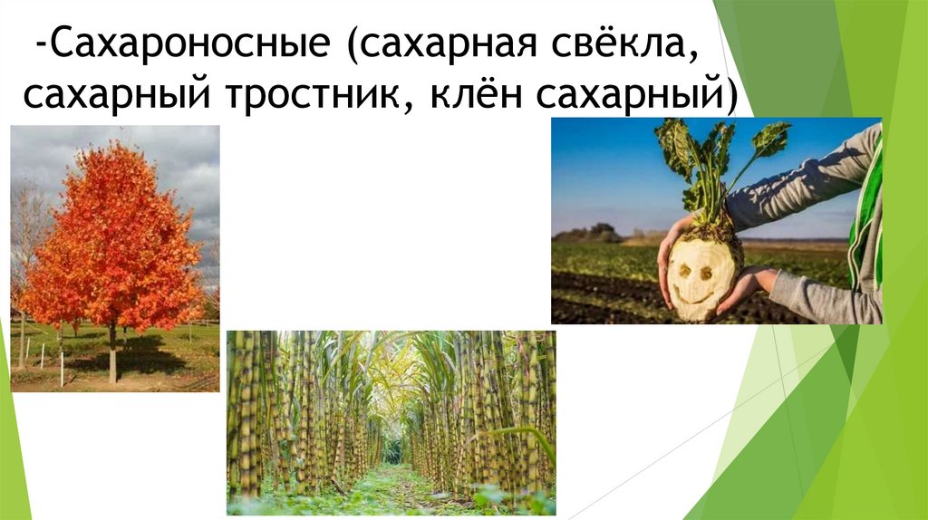 -Сахароносные (сахарная свёкла,сахарный тростник, клён сахарный)