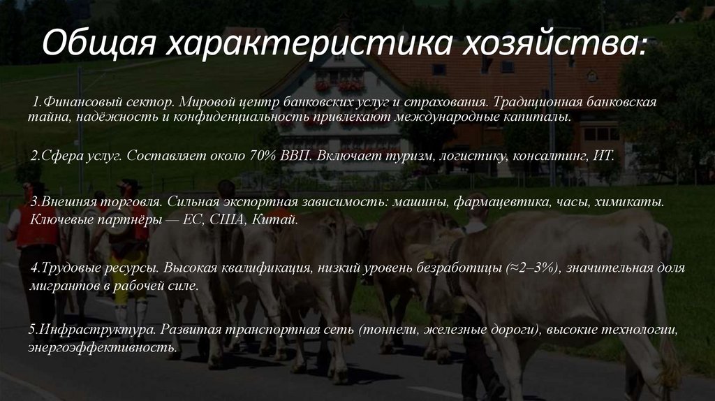 Общая характеристика хозяйства:1.Финансовый сектор. Мировой центр банковских услуг и страхования. Традиционная банковская