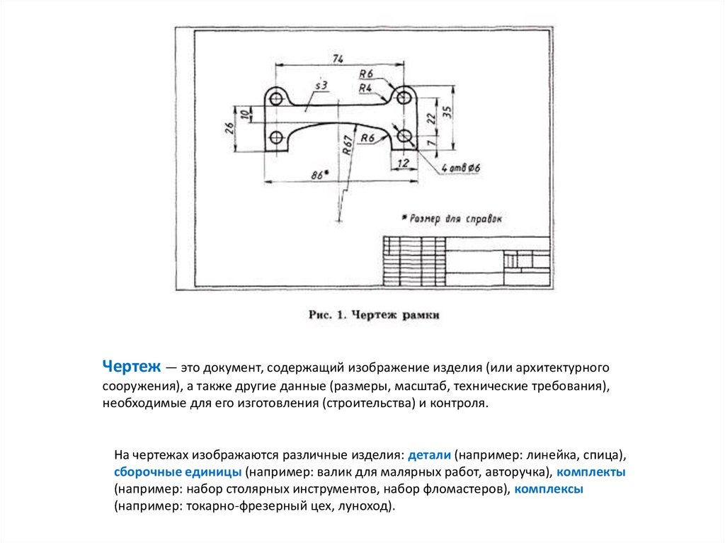 Чертеж — это документ, содержащий изображение изделия (или архитектурногосооружения), а также другие данные (размеры, масштаб, технические требования),