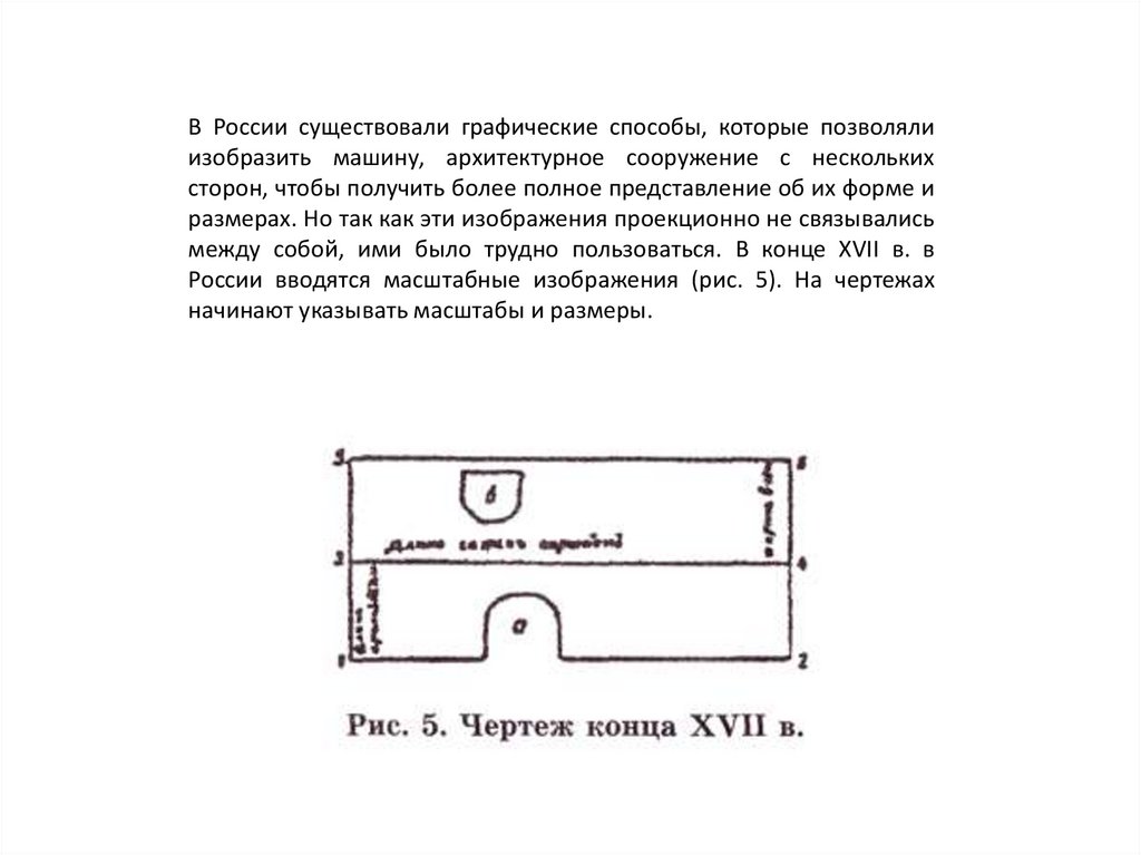В России существовали графические способы, которые позволялиизобразить машину, архитектурное сооружение с нескольких