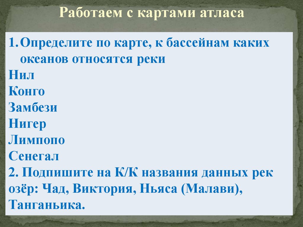 Работаем с картами атласа1.Определите по карте, к бассейнам каких
