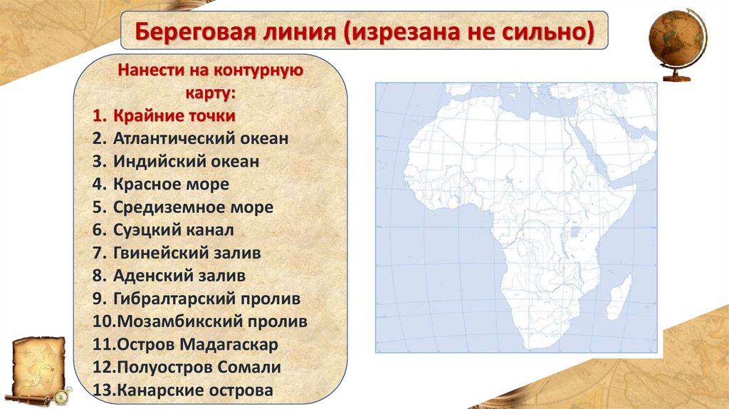 Береговая линия (изрезана не сильно)Нанести на контурную