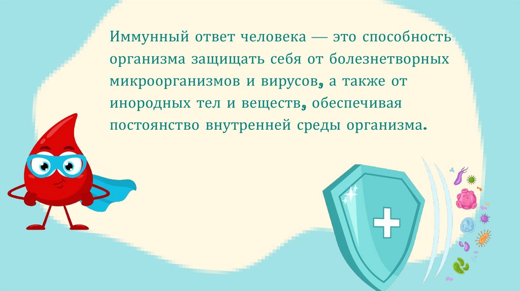 Иммунный ответ человека — это способностьорганизма защищать себя от болезнетворных