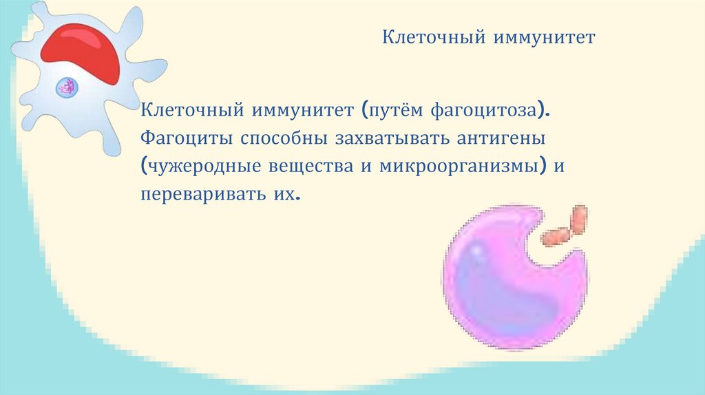 Клеточный иммунитетКлеточный иммунитет (путём фагоцитоза).