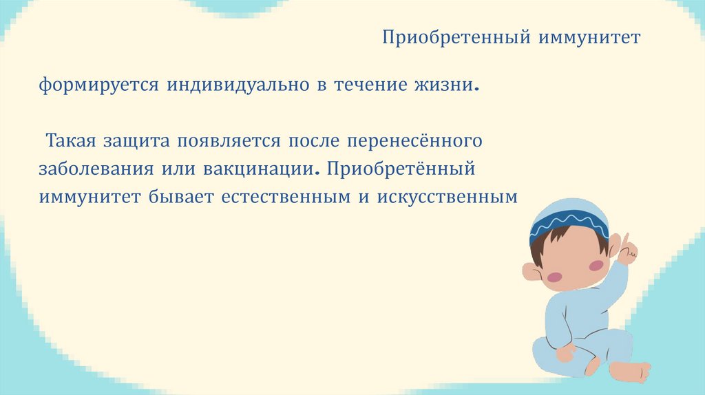 Приобретенный иммунитетформируется индивидуально в течение жизни.
