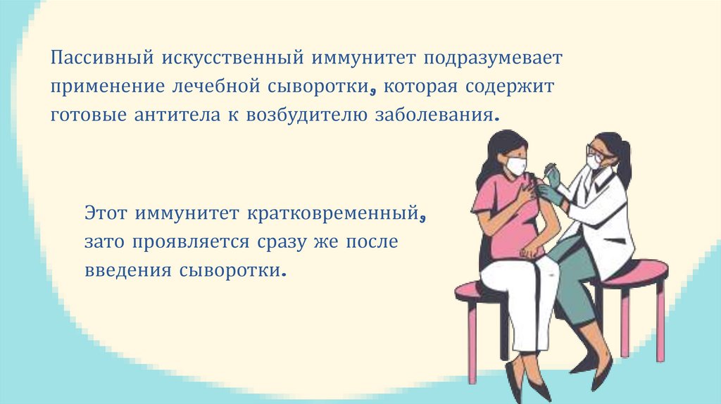 Пассивный искусственный иммунитет подразумеваетприменение лечебной сыворотки, которая содержит