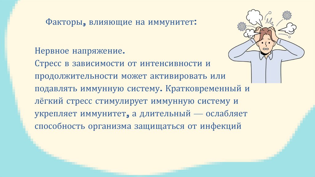 Факторы, влияющие на иммунитет:Нервное напряжение.