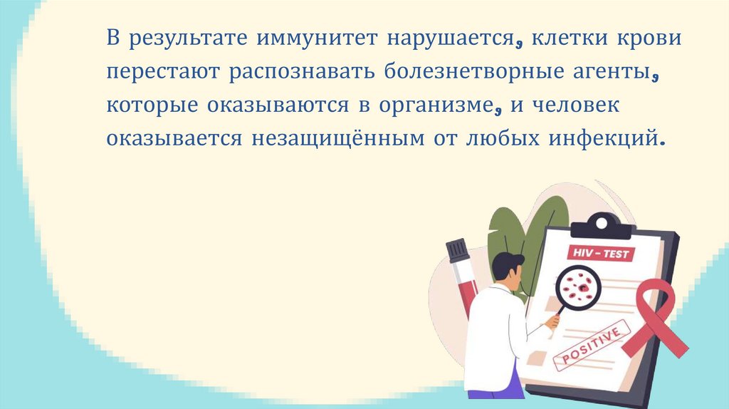 В результате иммунитет нарушается, клетки кровиперестают распознавать болезнетворные агенты,