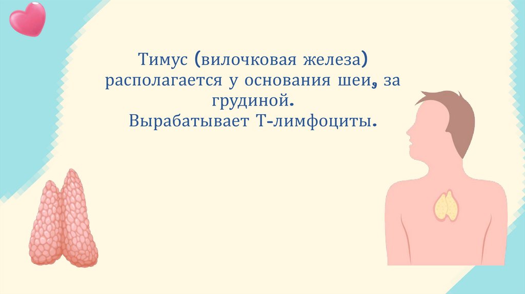 Тимус (вилочковая железа)располагается у основания шеи, за