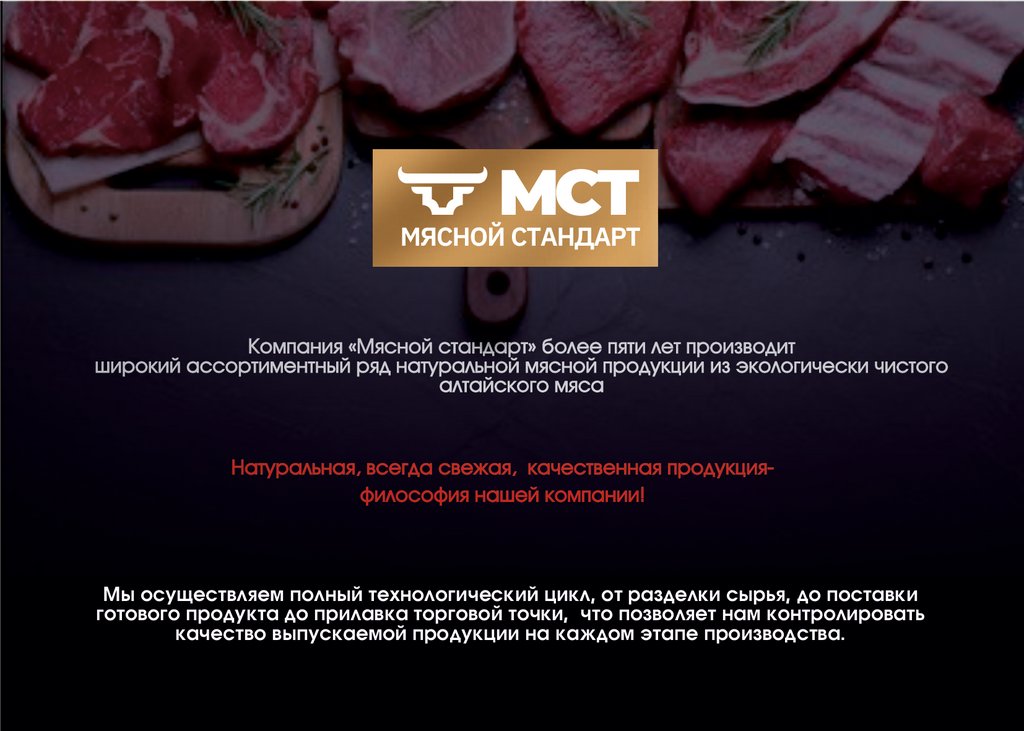 Êîìïàíèÿ «Ìÿñíîé ñòàíäàðò» áîëåå ïÿòè ëåò ïðîèçâîäèòøèðîêèé àññîðòèìåíòíûé ðÿä íàòóðàëüíîé ìÿñíîé ïðîäóêöèè èç ýêîëîãè÷åñêè ÷èñòîãî