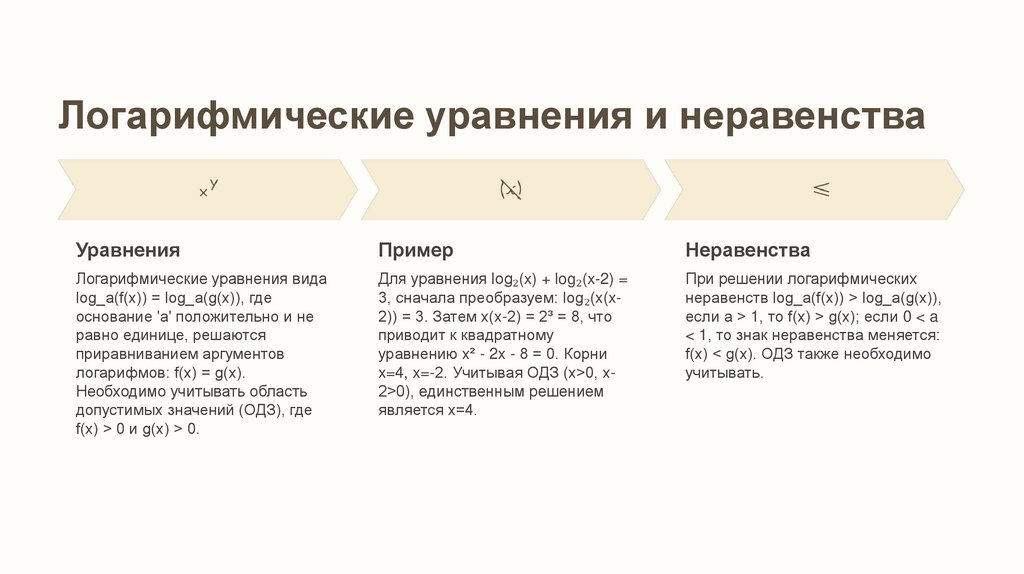 Логарифмические уравнения и неравенстваУравнения
