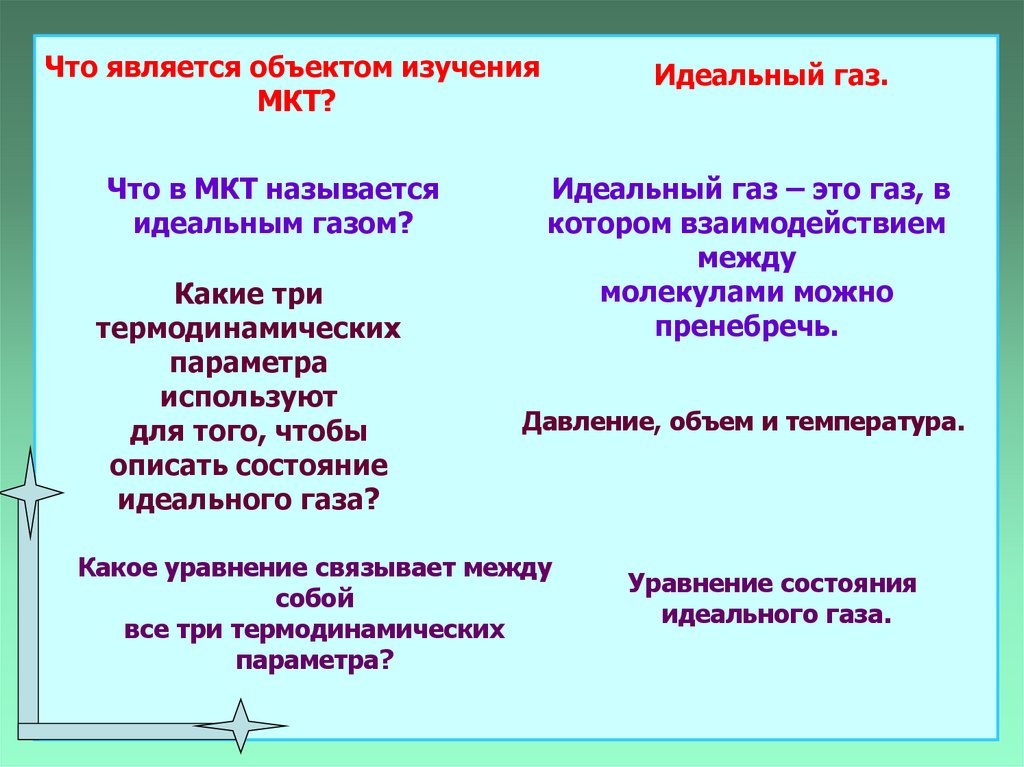 Что является объектом изученияМКТ?