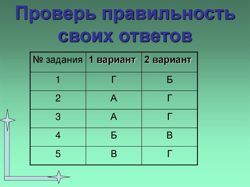 Проверь правильностьсвоих ответов