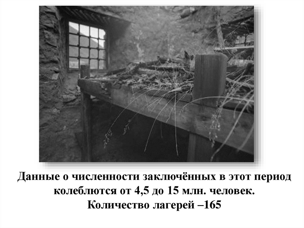 Данные о численности заключённых в этот периодколеблются от 4,5 до 15 млн. человек.