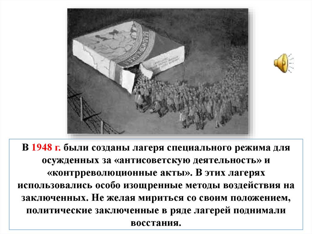 В 1948 г. были созданы лагеря специального режима дляосужденных за «антисоветскую деятельность» и