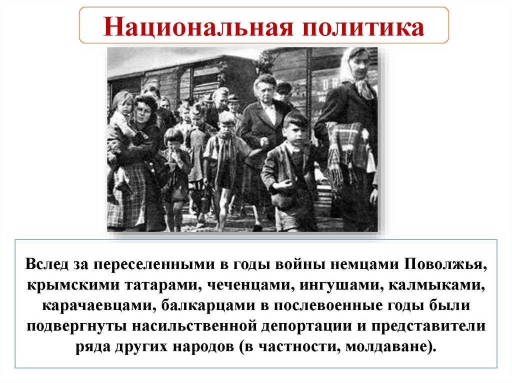 Национальная политикаВслед за переселенными в годы войны немцами Поволжья,