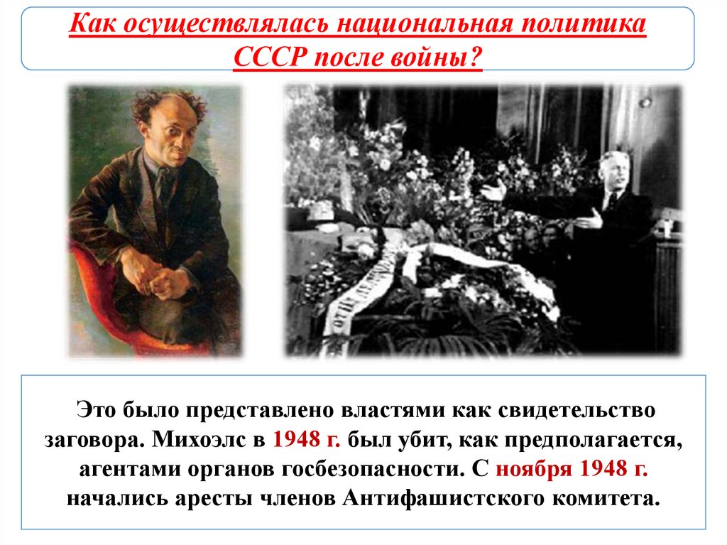 заговора. Михоэлс в 1948 г. был убит, как предполагается,