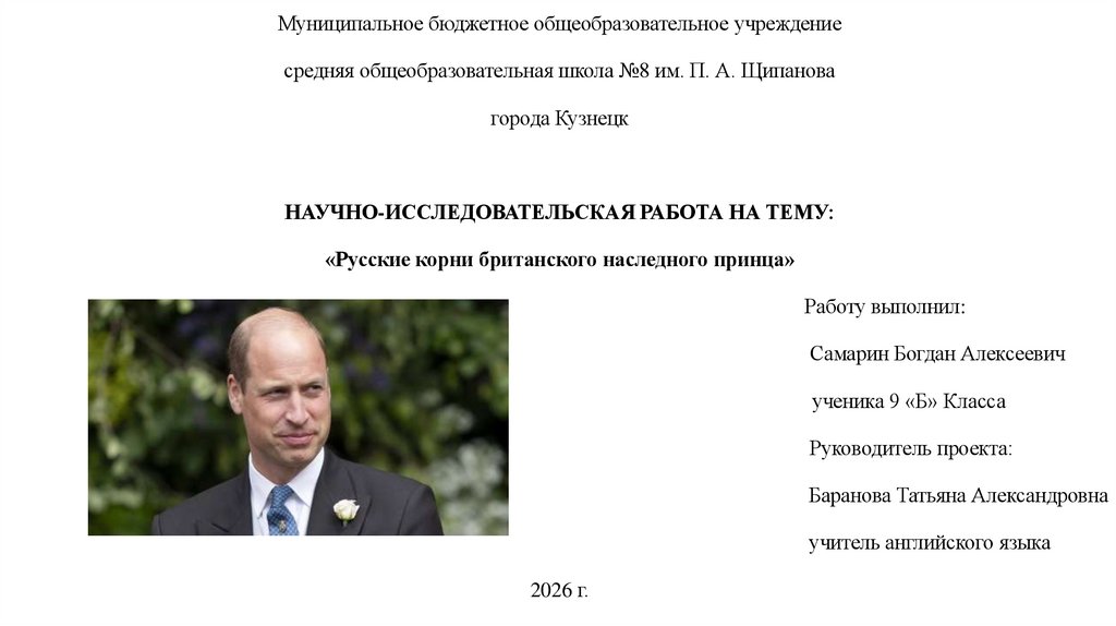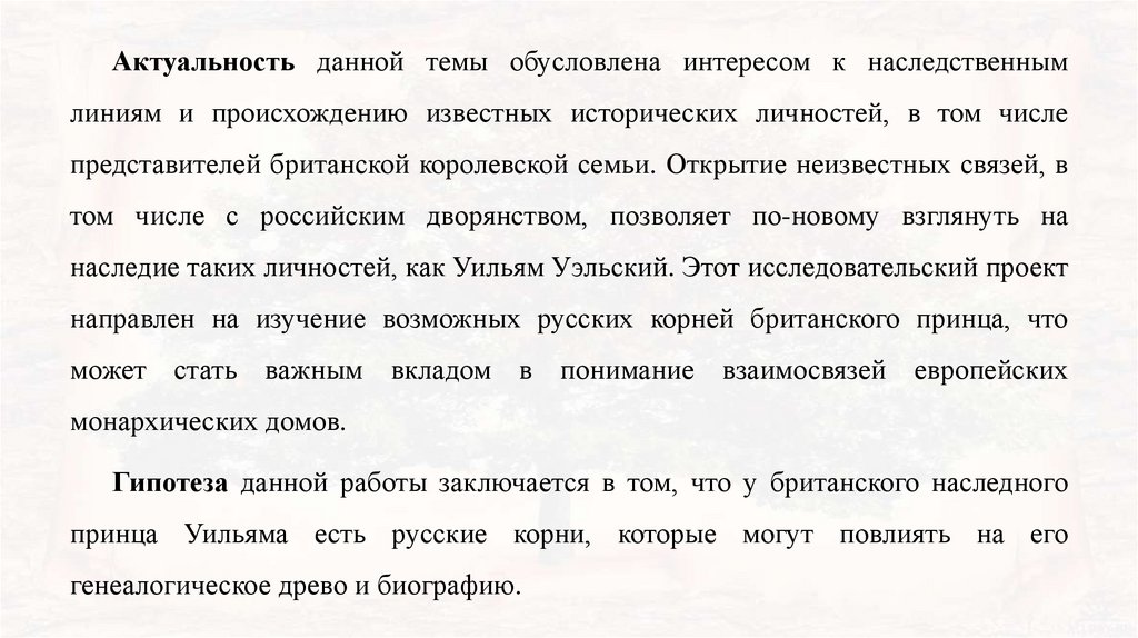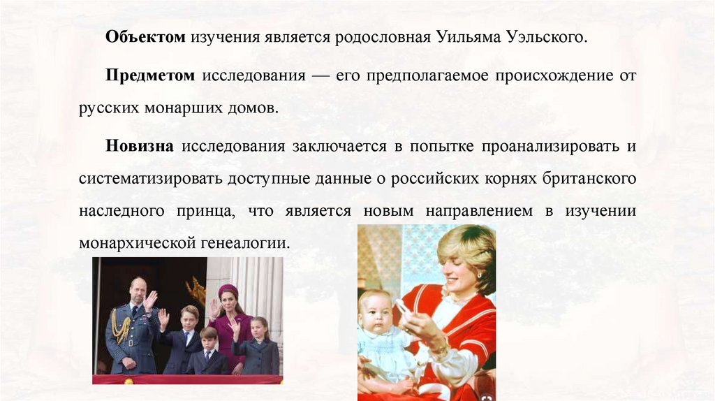 Целью данного исследования является установление возможных русскихкорней в семье принца Уильяма, а также определение значения этого факта в