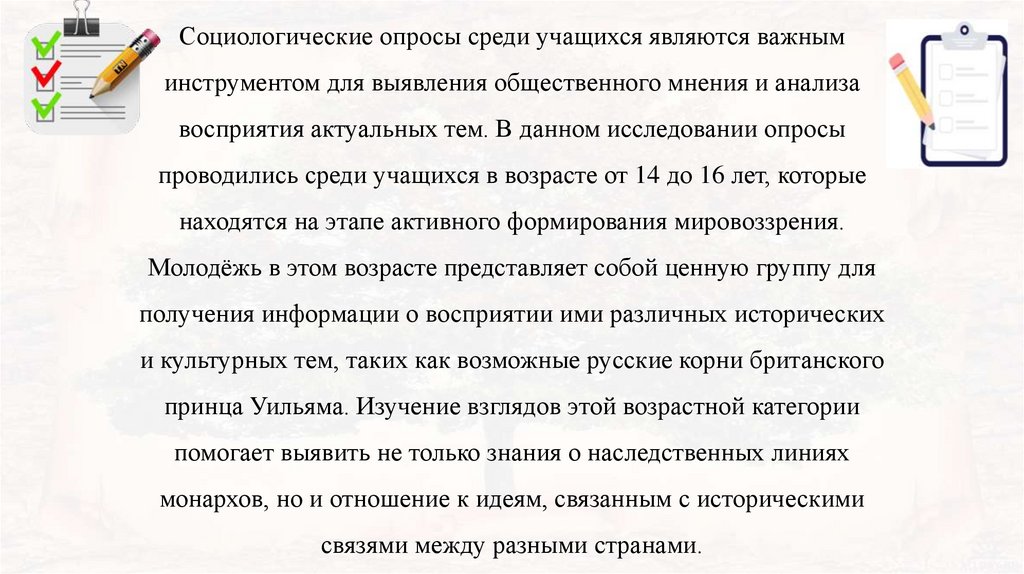 Социологические опросы среди учащихся являются важныминструментом для выявления общественного мнения и анализа