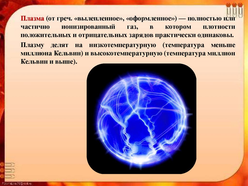 Плазма (от греч. «вылепленное», «оформленное») — полностью иличастично