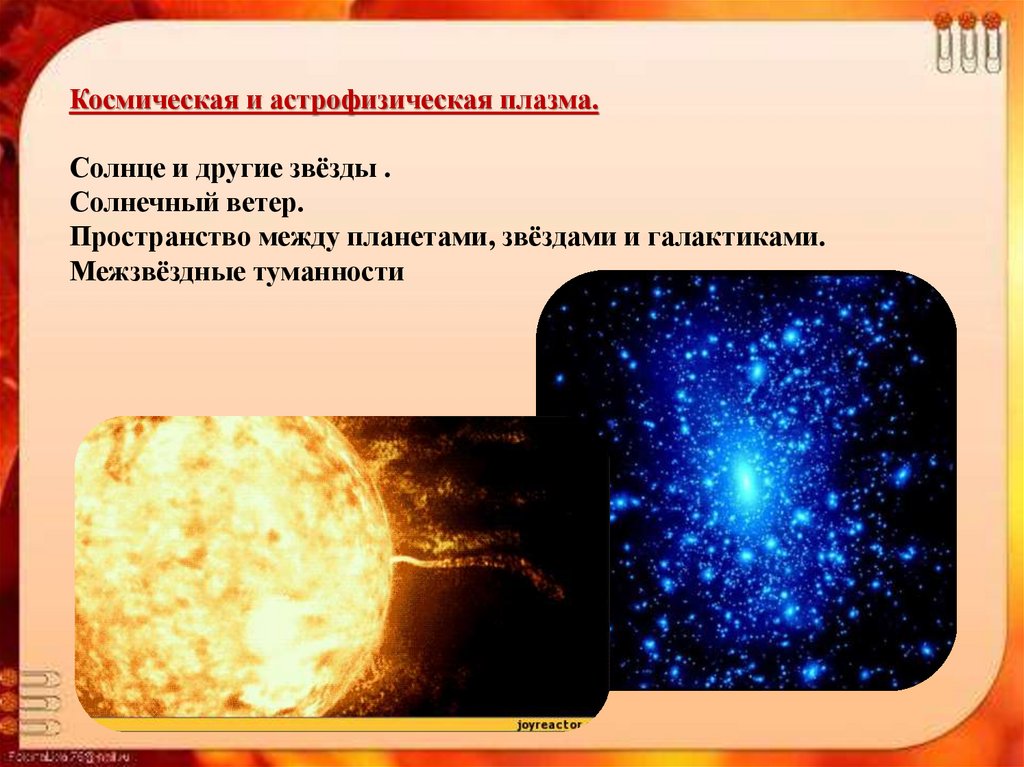 Плазма – наиболее распространенная форма материи во Вселенной.Солнце, а также все другие звезды и некоторые виды межзвездного