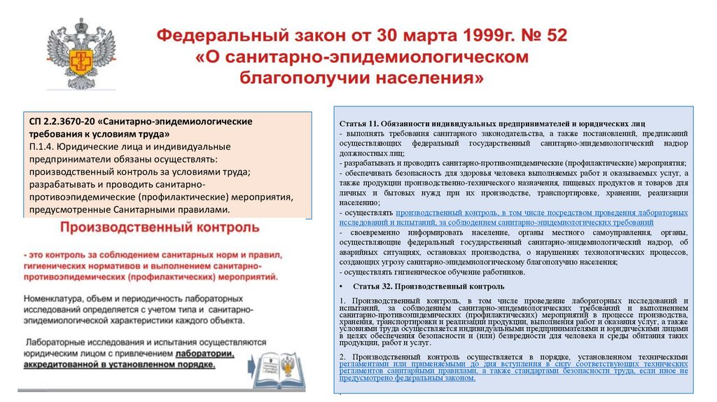 законодательства• СП 2.3.6.3668-20 «Санитарно-эпидемиологические требования к условиям деятельности