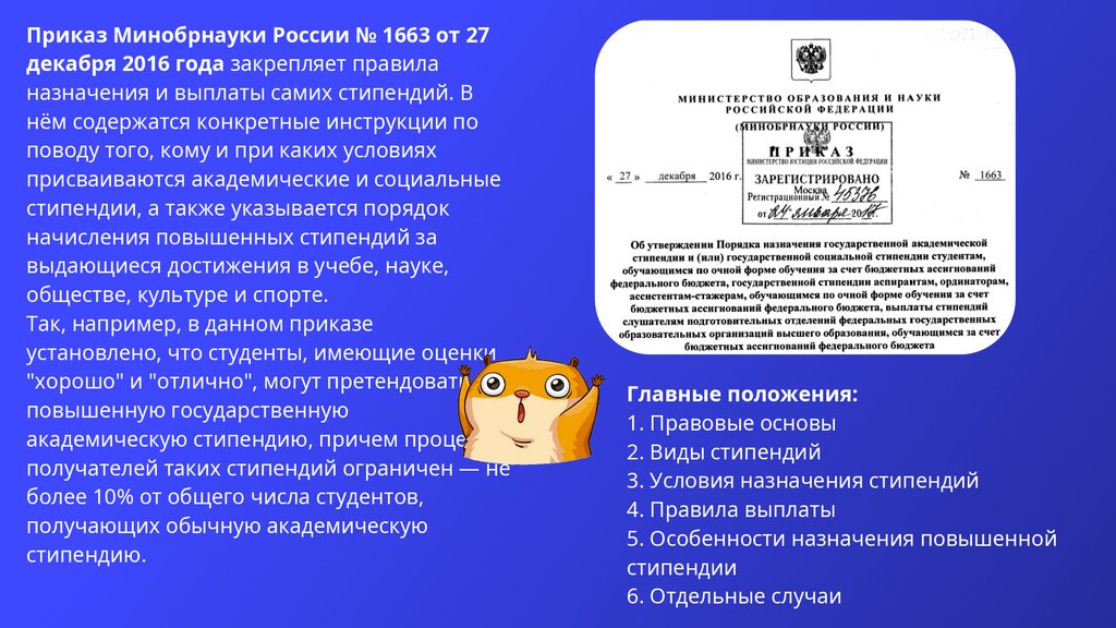 Механизм формирования стипендийОснован на федеральном законе №273ФЗ и нормативных актах, действующих
