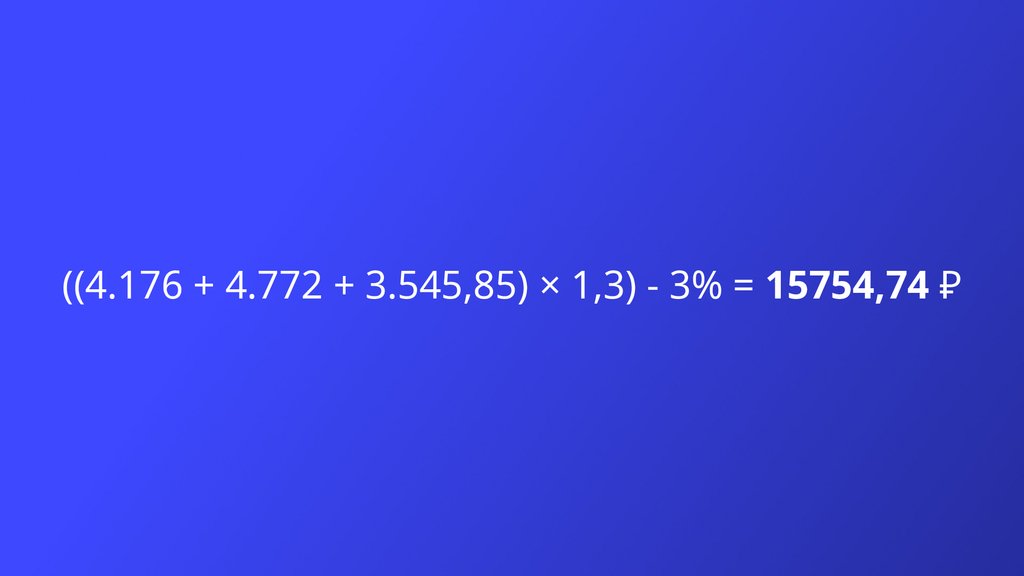 ((4.176 + 4.772 + 3.545,85) × 1,3) - 3% = 15754,74 ₽40.