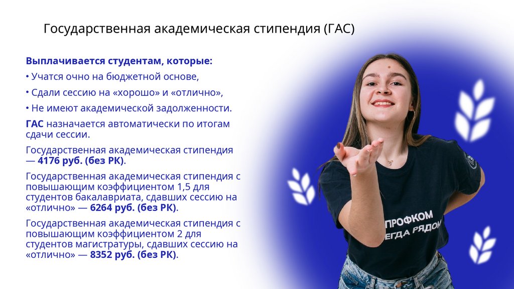 Государственная академическая стипендия (ГАС)Выплачивается студентам, которые: