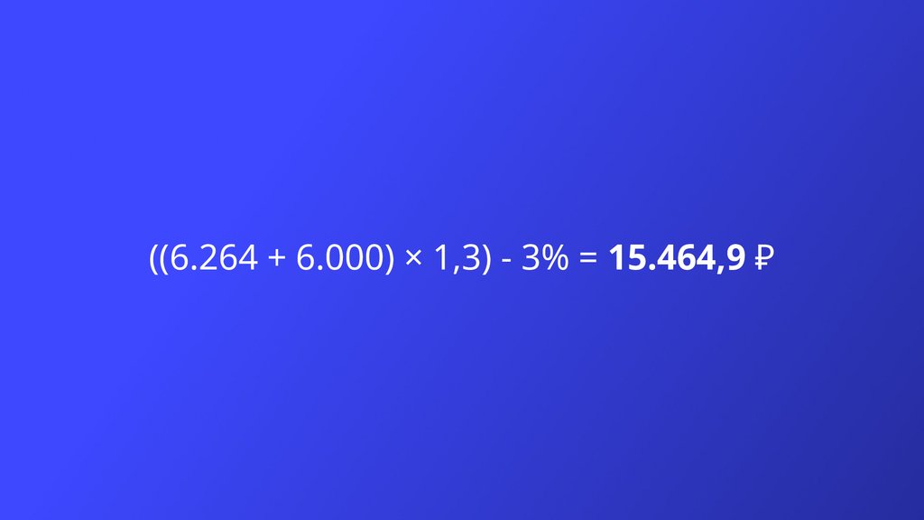 ((6.264 + 6.000) × 1,3) - 3% = 15.464,9 ₽42.