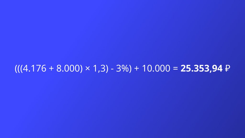 (((4.176 + 8.000) × 1,3) - 3%) + 10.000 = 25.353,94 ₽44.